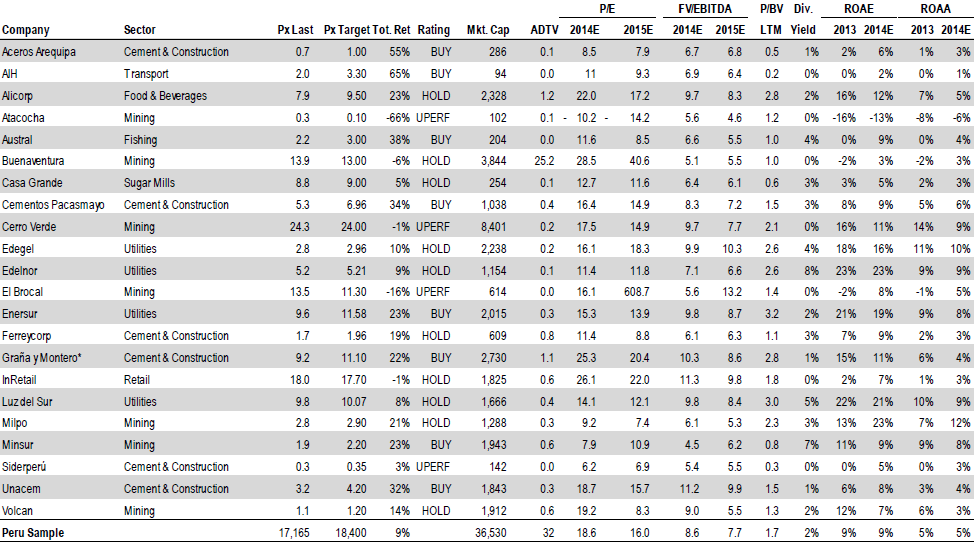 Perú: Precios Objetivos al 4 Septiembre 2014 por IM Trust 1 octubre, 201420 agosto, 2016 admin Tweet Follow me Publicaciones no relacionadas.