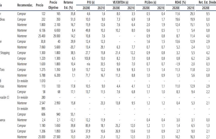 Recomendación y Precios Objetivos al 04/09/2020 por Banchile. admin hace 5 años Tweet Follow me VER IMAGEN COMPLETA Publicaciones no relacionadas.