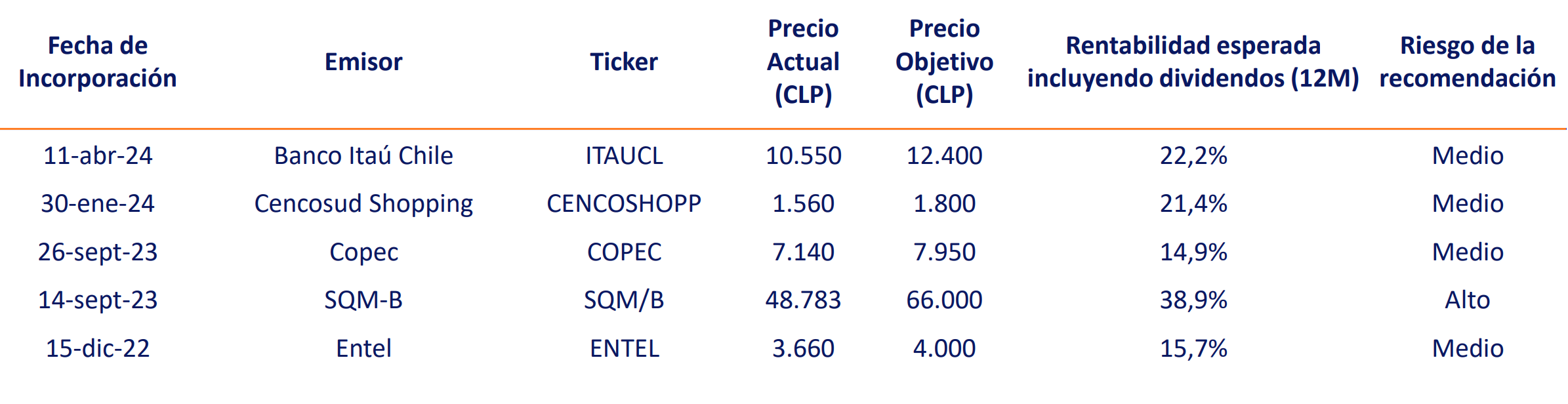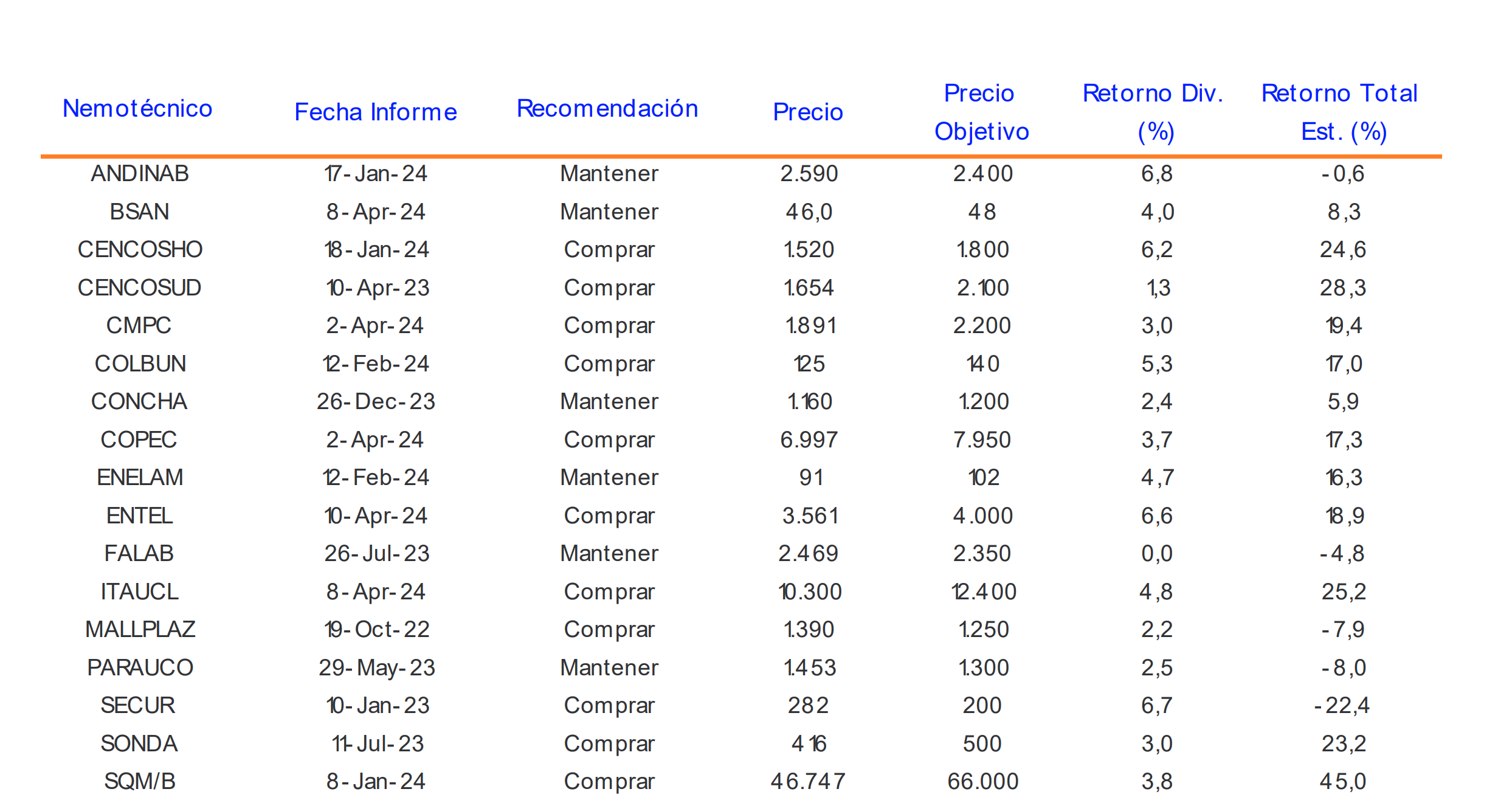 Acciones Recomendadas y Precios Objetivos a Abril 2024 por Banchile.