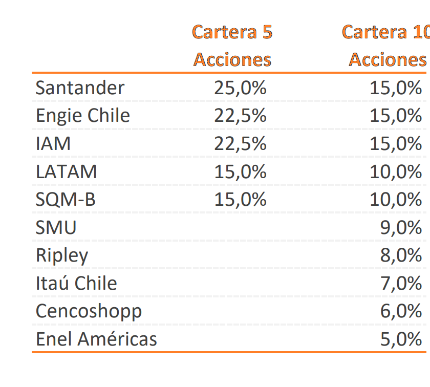 Se destaca el ingreso de Santander, Engie Chile, IAM y Latam Airlines a la cartera de 5 acciones.