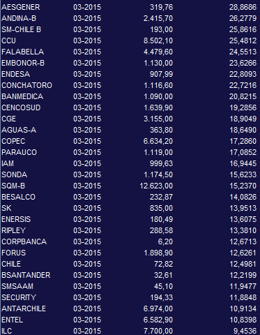 Listado P/U acciones chilenas al 20 Nov 2015. admin hace 10 años Tweet Follow me Publicaciones no relacionadas.