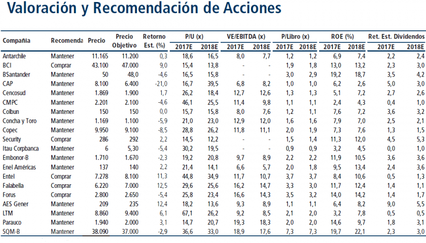 Precios Objetivos al 5 Enero 2018 por Banchile admin hace 8 años Tweet Follow me Precios Objetivos de acciones chilenas al 5 Enero 2018 por Banchile. Publicaciones no relacionadas.