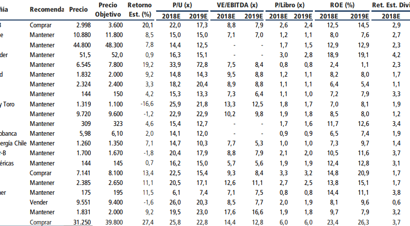 Durante esta semana, se subió el PO de CMPC y COPEC a $2.400 y $9.600.-pesos respectivamente, aunque se reiteró la recomendación neutral para ambas.