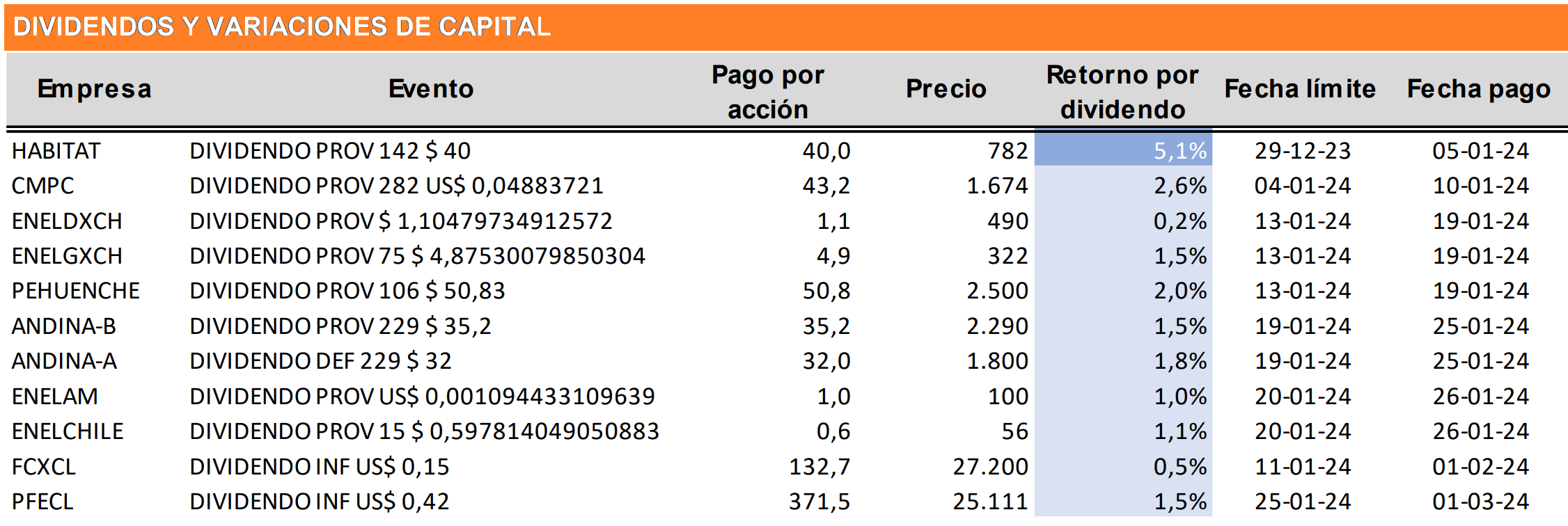 Recomendaciones y Precios Objetivos calculados al 5 de Enero 2024. Para agrandar imagen has click acá.