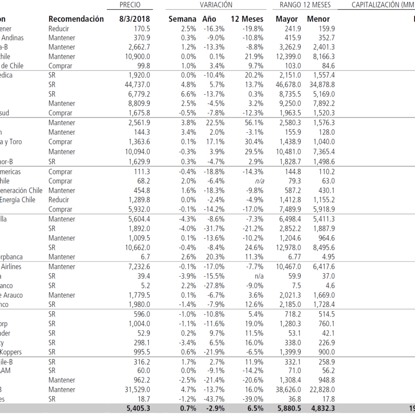Se mantiene la misma recomendación de Top Picks al 3/08/2018 por Santander: